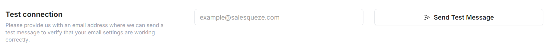 Before saving your settings, you should test your connection to ensure it works correctly. Type in an email address in the Test connection field, and click on Send Test Message.